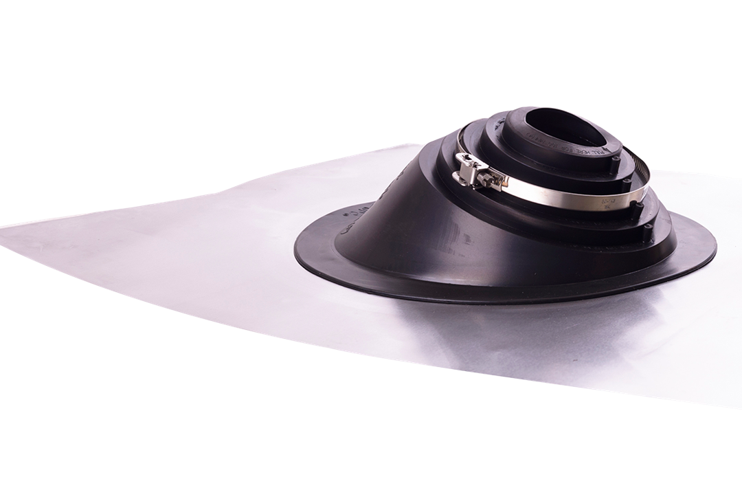 För rörgenomföring genom tak med tegel- eller betongpannor så använder du denna aluminiumstos.