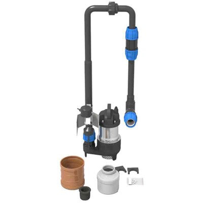 Paketet innehåller pump, nivågivare samt anslutningsdelar.
