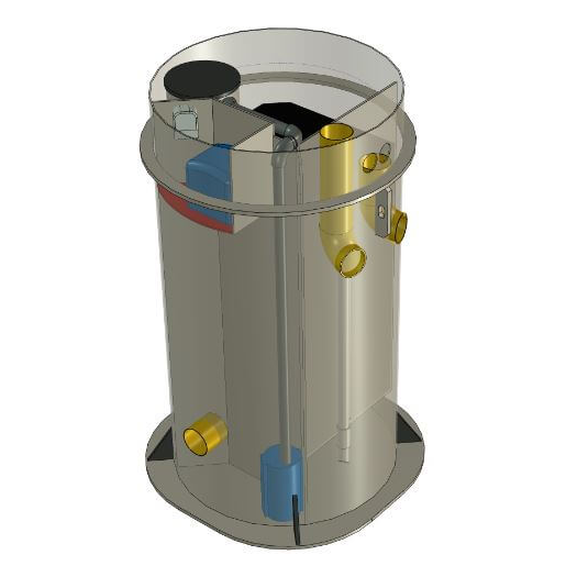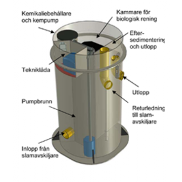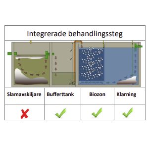 - Kräver en befintligt eller ny trekammarbrunn i anslutning till reningsverket.