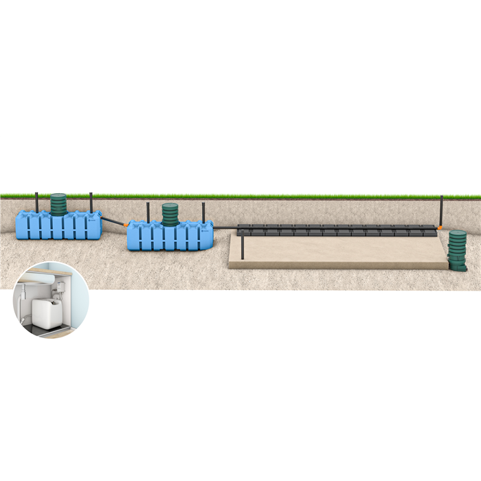 INDRÄN PRO-markbädd för svart- och gråvatten (WC+BDT-vatten) för två hushåll (10 PE).