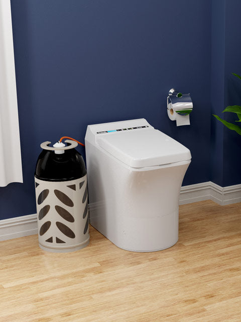 Gasdriven förbränningstoalett. Toaletten kräver ingen tank, vatten, el eller avlopp. Perfekt för fritidshuset eller för den entusiastiska camparen som lever vanlife. Kapacitet för upp till tio personer per dygn.