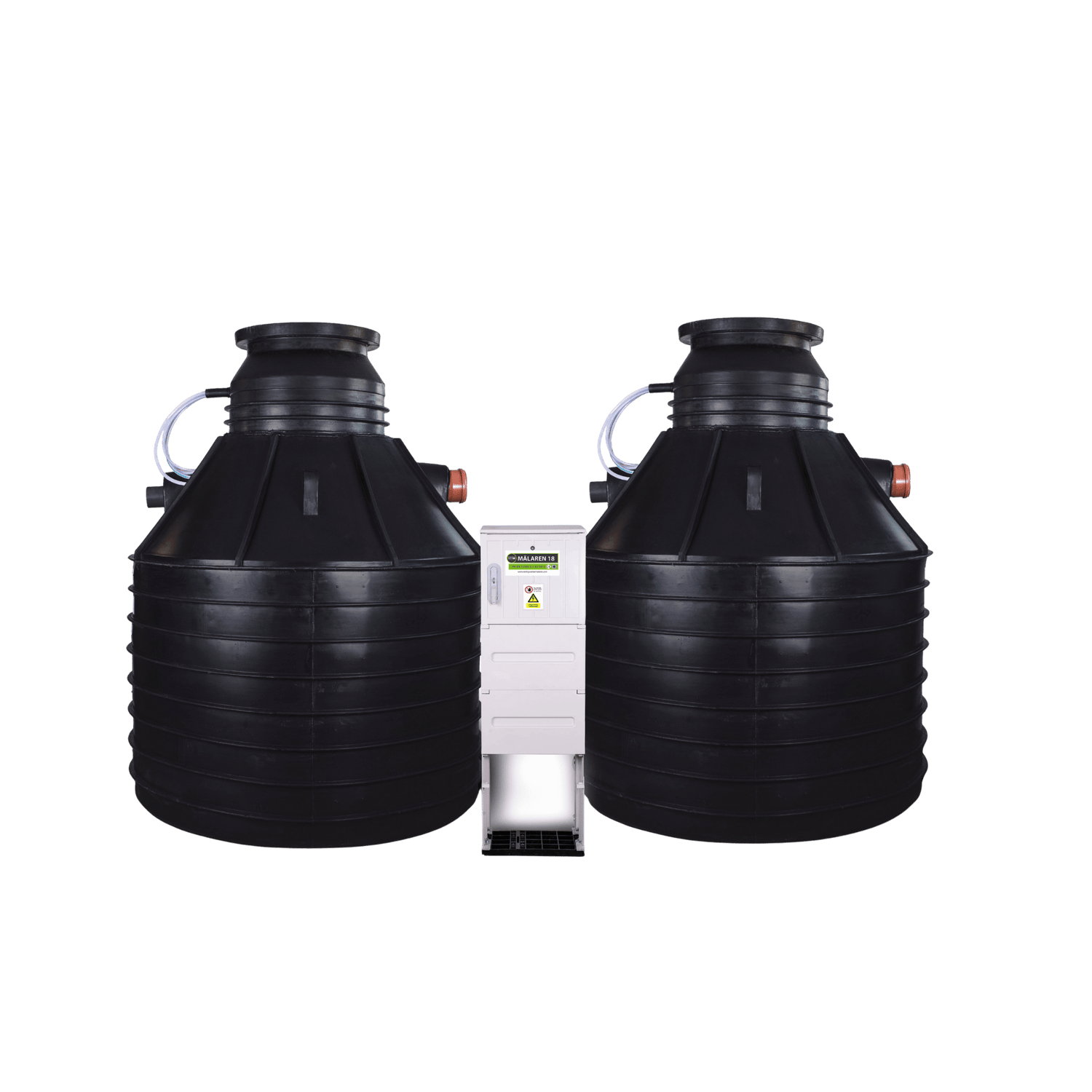 Mälaren 18 består utav 2 tankar och sköter hela avloppsreningen från samtliga hushåll med en biologisk rening för WC+BDT