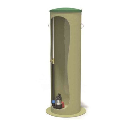 Pumpstation för dränvatten i glasfiber, med förankringsfläns. Pumpstation Ø 60 cm.